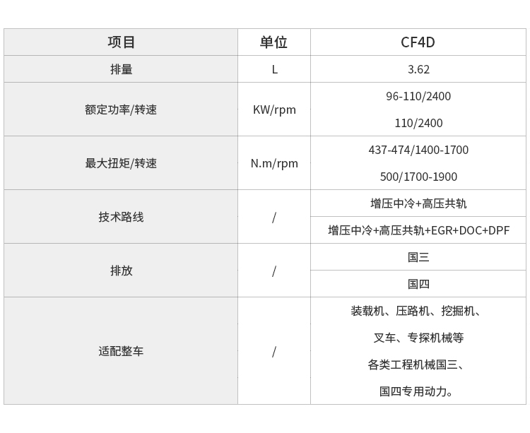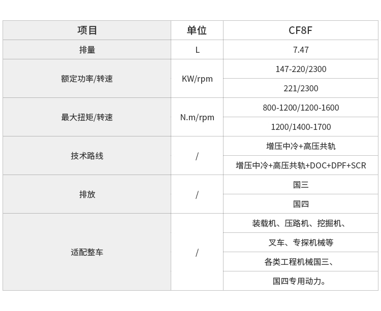 專門針對工程機械特點開發,滿足 15-300 馬力段工程機械動力需求,配置豐富,低速大扭矩,怠速帶載能力強,低速扭矩儲備高達 30%,馬力強勁。